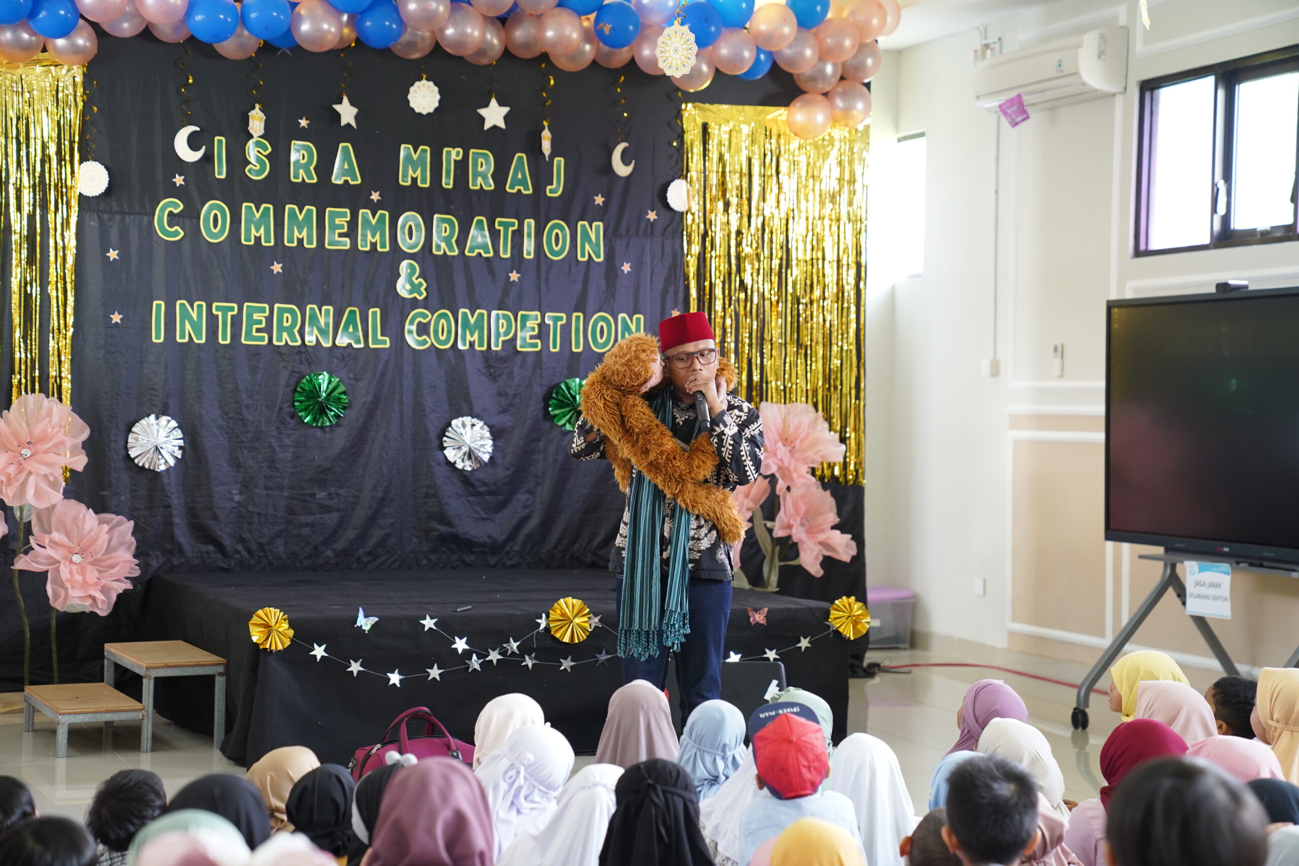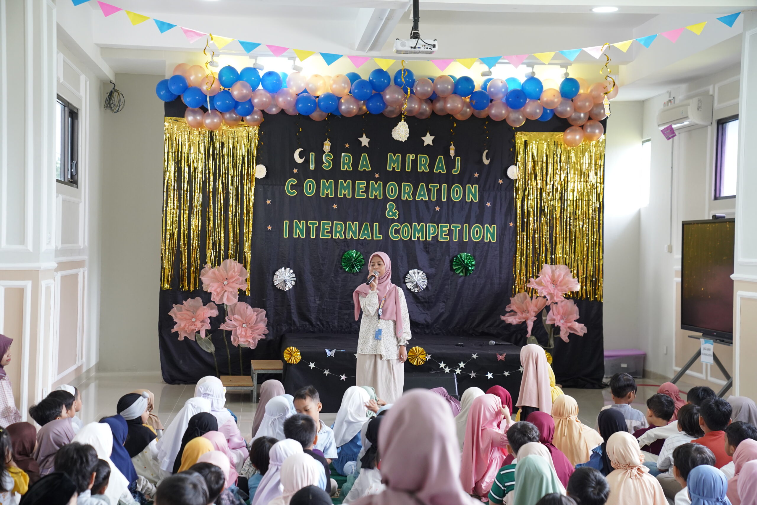 Pagi itu, tidak seperti biasanya, bagian depan Aula JHS diberi dekorasi yang menarik dan lucu untuk menyambut 154 siswa-siswi dan guru PG-K. Pukul 08.00 WIB, rangkaian kegiatan peringatan Isra Mi’raj dan Internal Competition resmi dibuka.