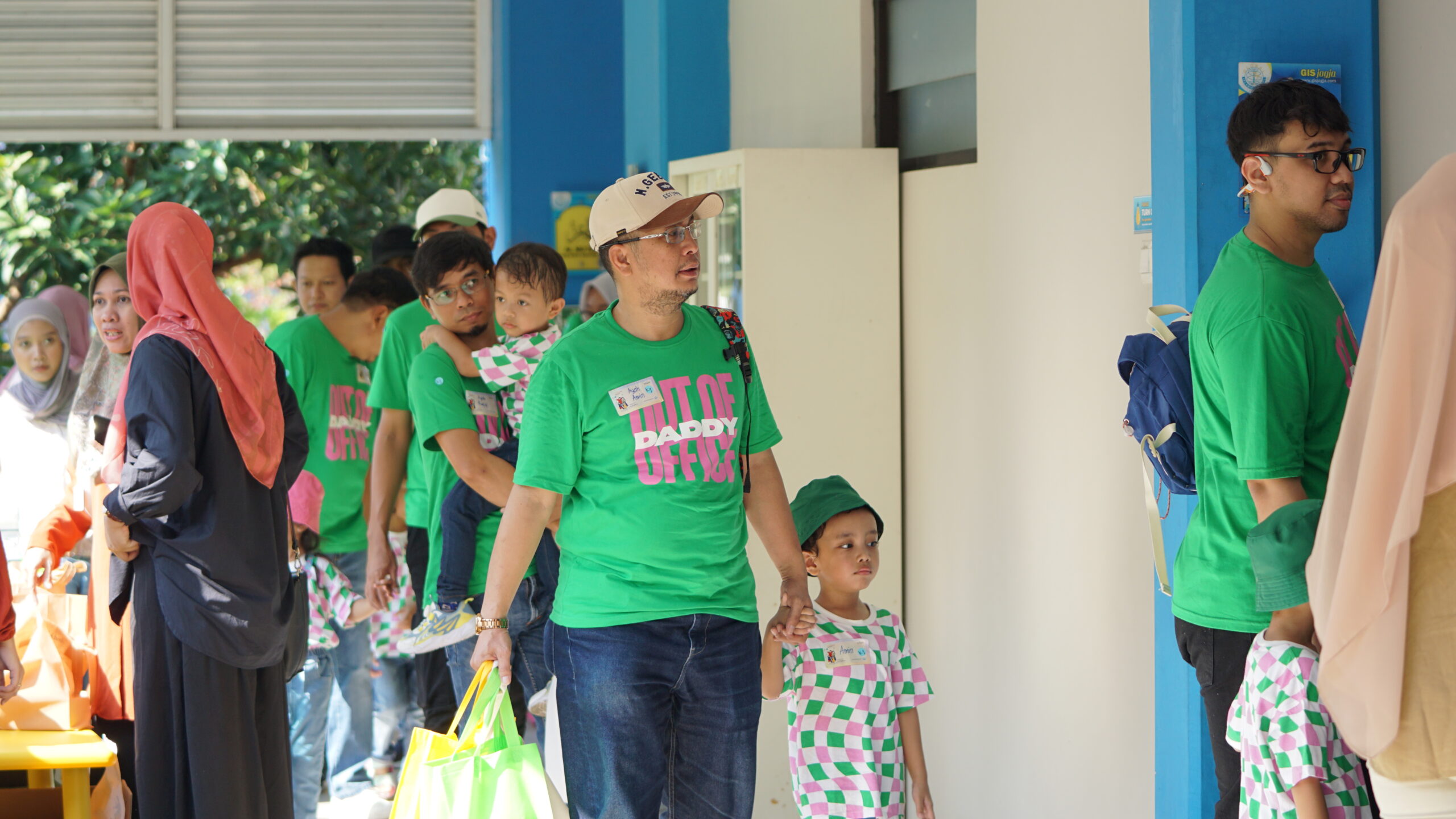 Ayah dan anak bergandengan tangan memasuki ruang kegiatan (Dokumentasi Tim Humas GIS 3 Jogja)