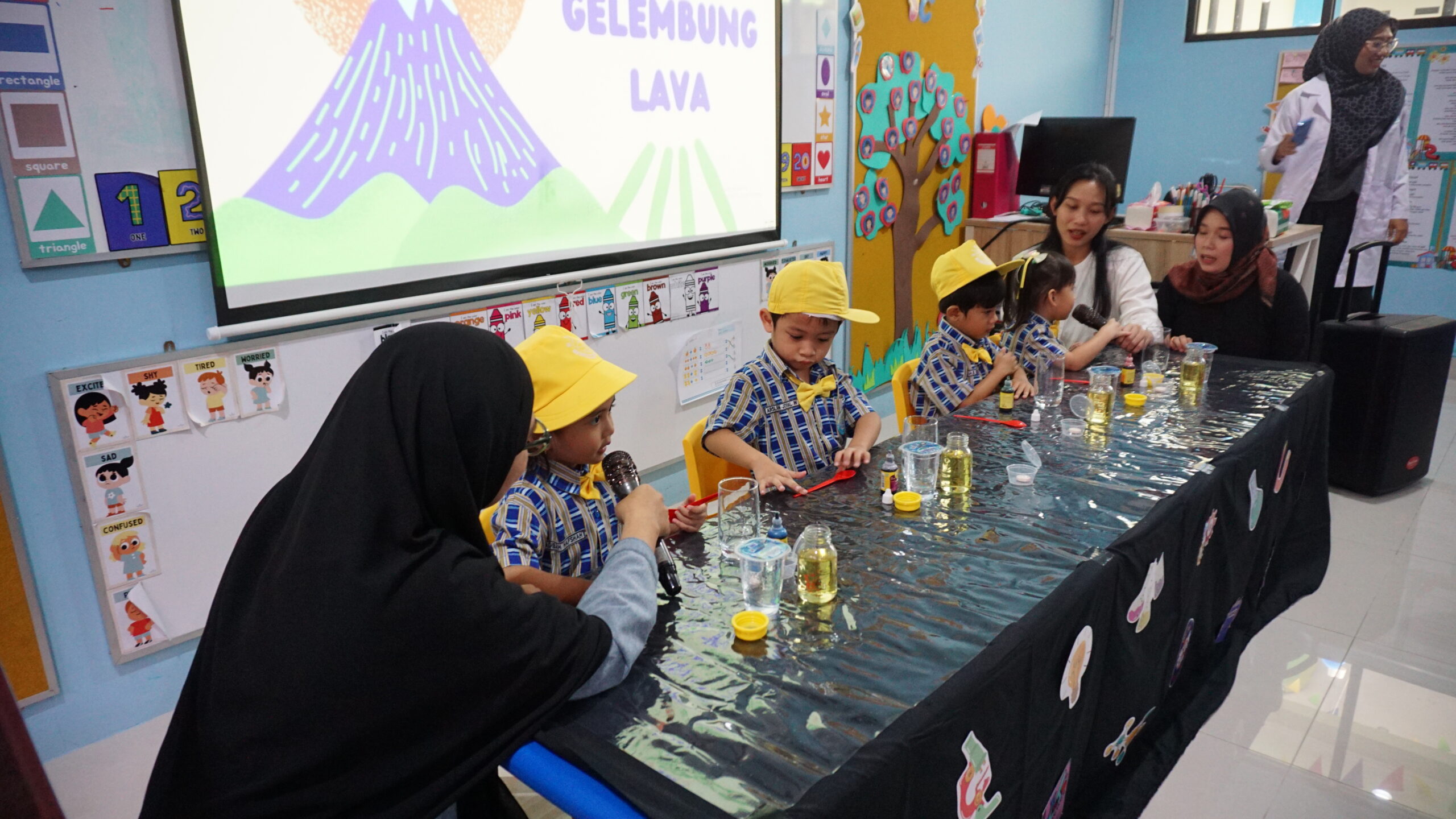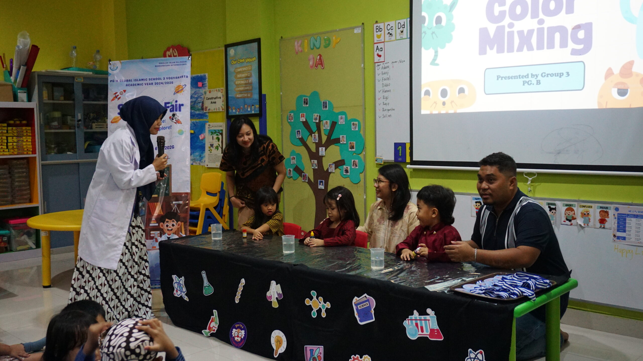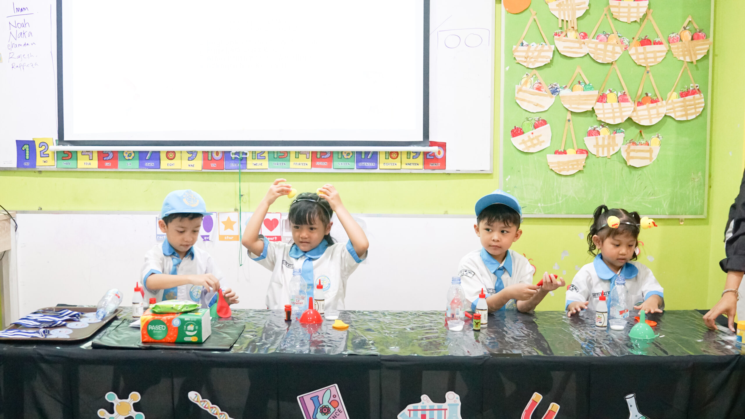Tanpa menunggu lama, siswa-siswi presenter langsung memulai eksperimen dengan penuh semangat. Seketika, ruang-ruang kelas di PG-K GIS 3 Jogja menjelma menjadi “laboratorium” bagi para profesor cilik dari Playgroup dan Kindy-1