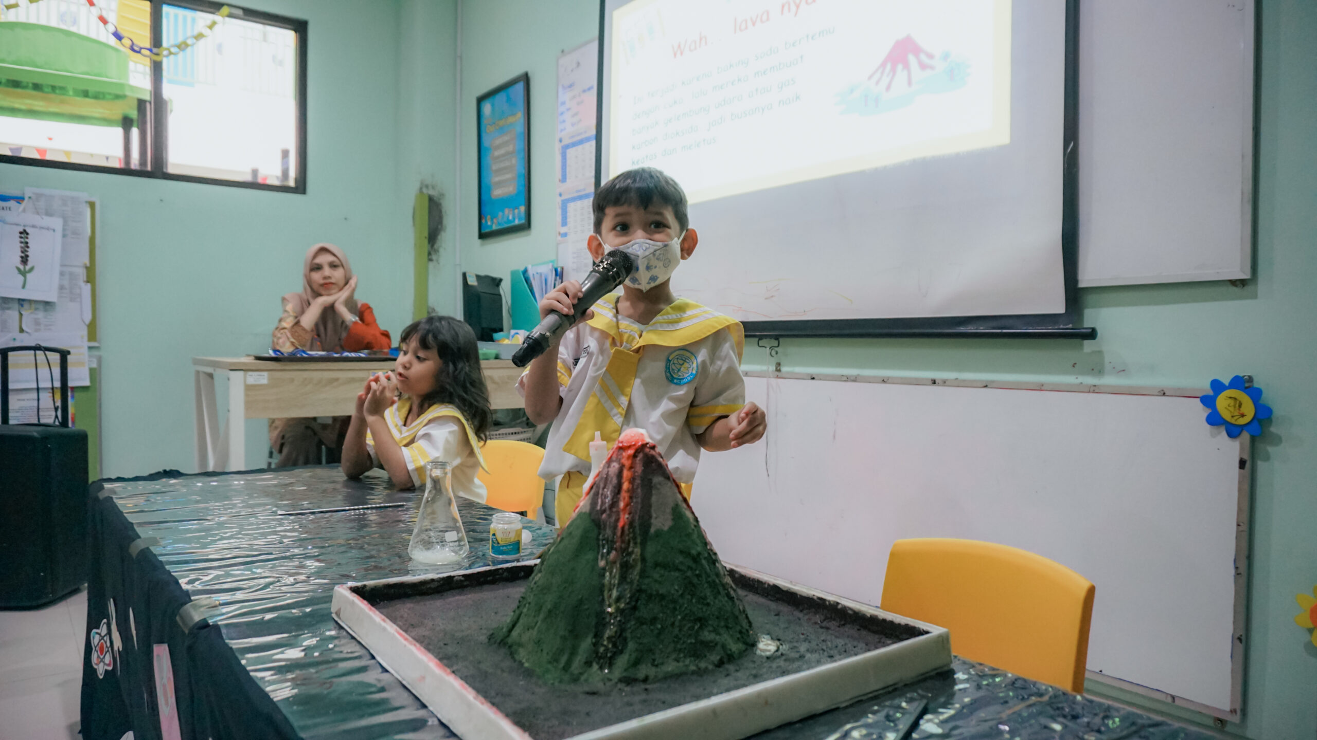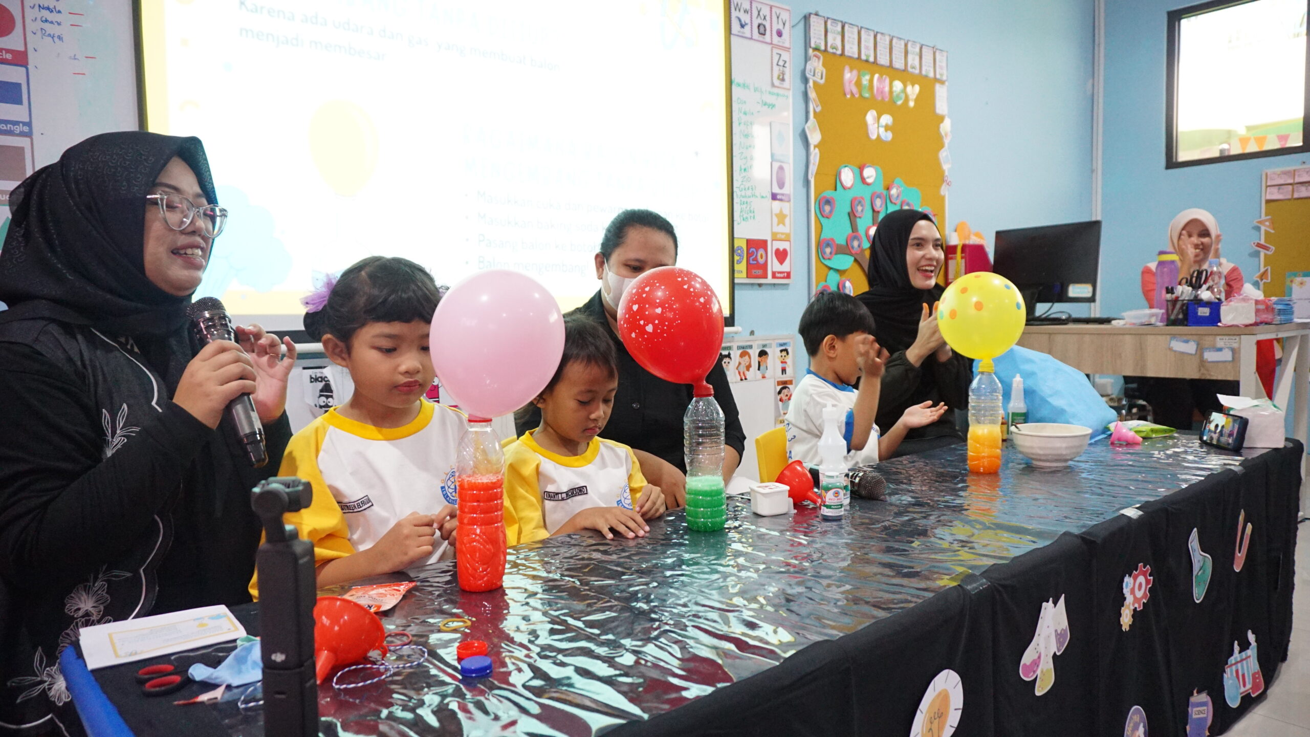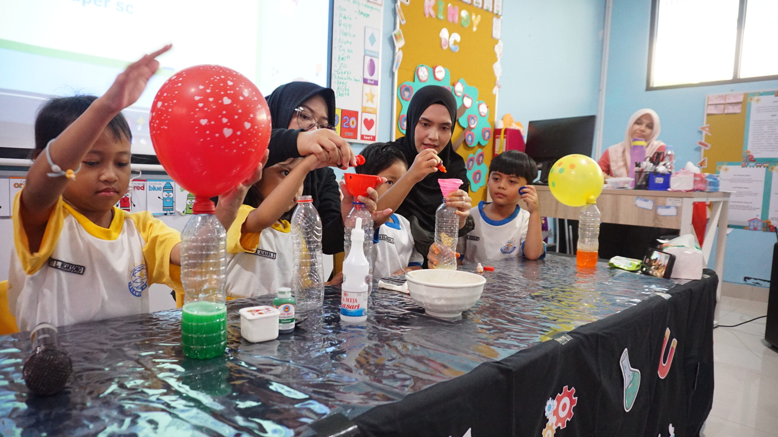 Selama lima hari, berbagai eksperimen seru mewarnai kegiatan belajar di kelas. Mulai dari eksperimen gunung meletus dan balon yang mengembang tanpa ditiup. Lewat percobaan-percobaan itu, siswa belajar sambil bermain dan bereksplorasi.