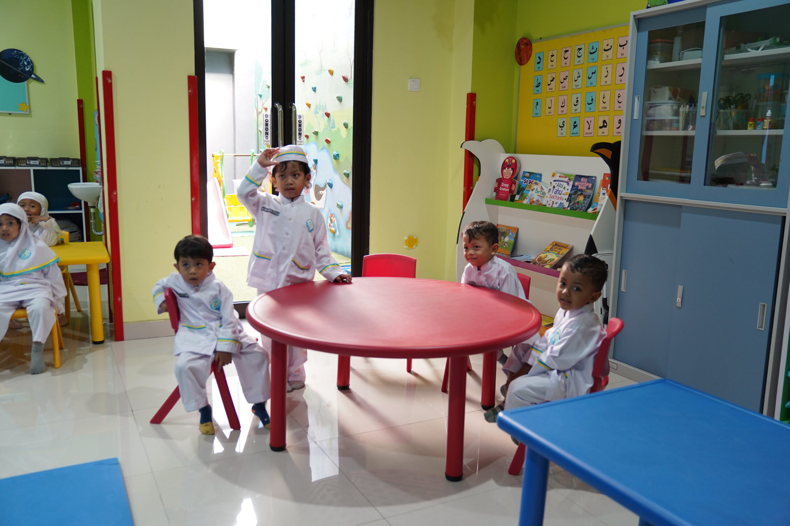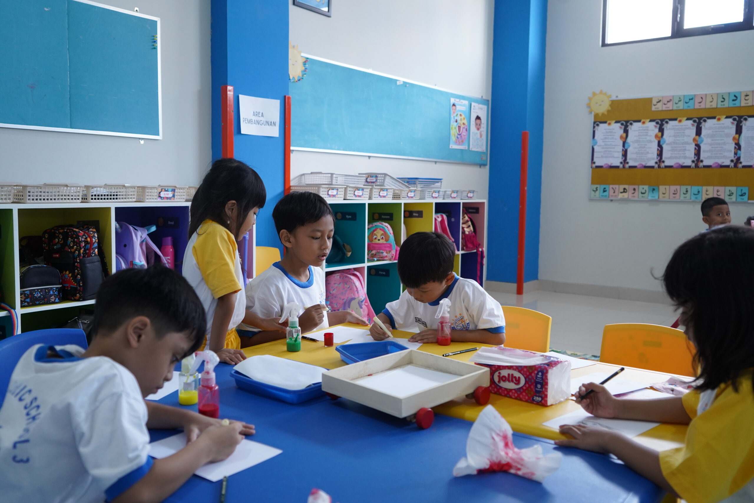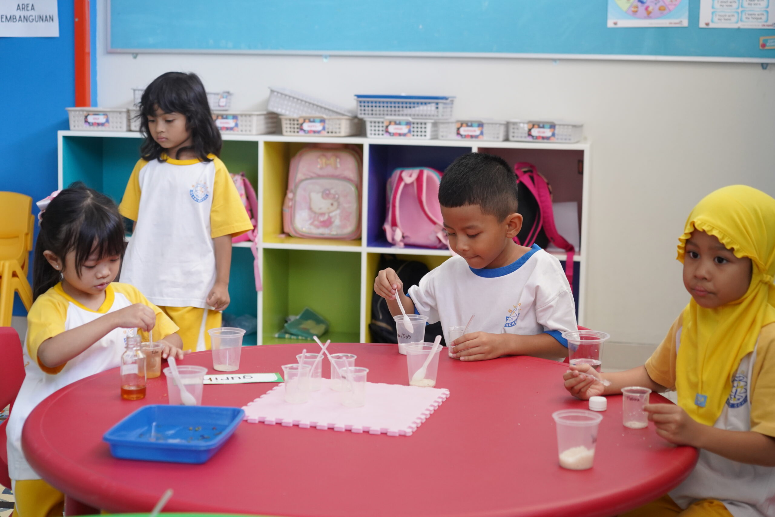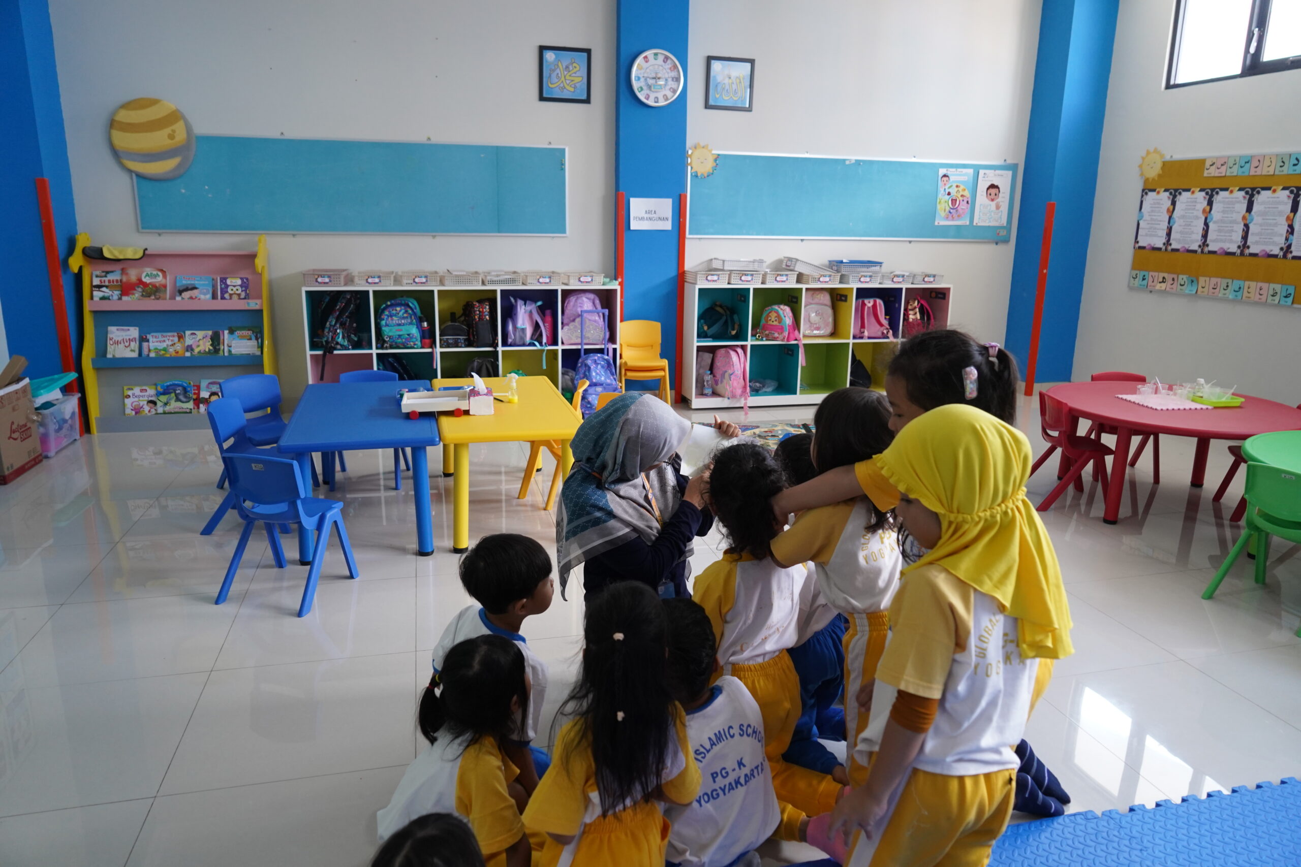 Pembelajaran klasikal yang mengharuskan siswa duduk diam di kelas kerap terasa membosankan, terutama untuk usia taman kanak-kanak yang aktif. Maka pembelajaran area dihadirkan di PG-K GIS 3 Jogja sebagai solusi untuk persoalan tersebut.